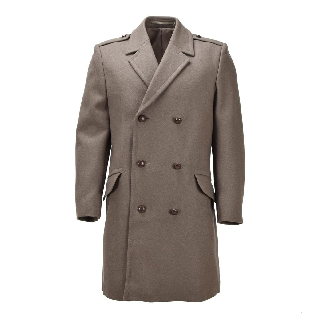 Abrigo de vestir de lana militar holandés original con doble botonadura, color caqui