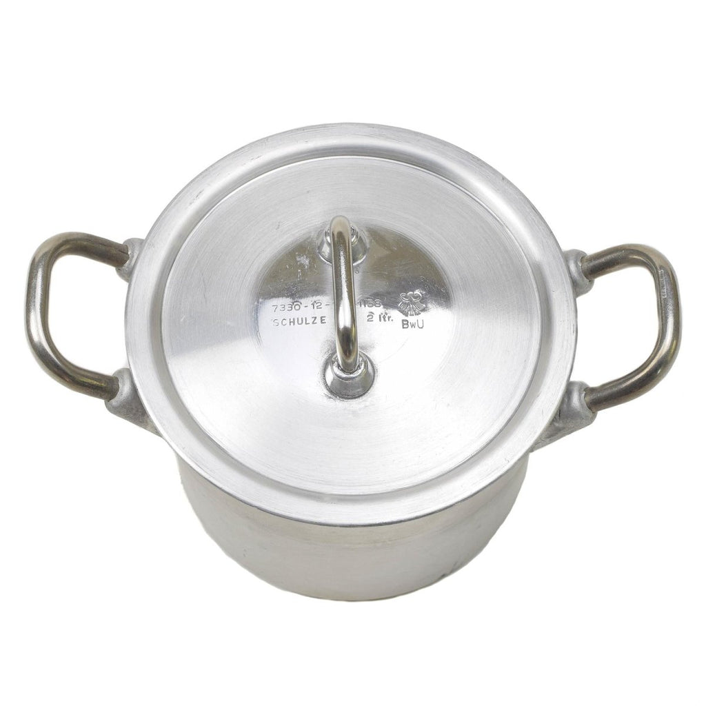 - La construcción de aluminio de la olla garantiza propiedades livianas y conductoras del calor, perfectas para cocinar en ambientes al aire libre. Con una transición perfecta del ejército alemán a los entusiastas de las actividades al aire libre, es una opción confiable para raciones de campaña y cocinar mientras viaja.