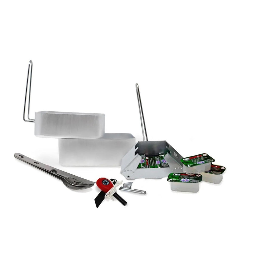 - SET INCLUDES : Estufa, latas de desorden, juego de cubiertos, combustible sólido, abreler, píldora, delantero