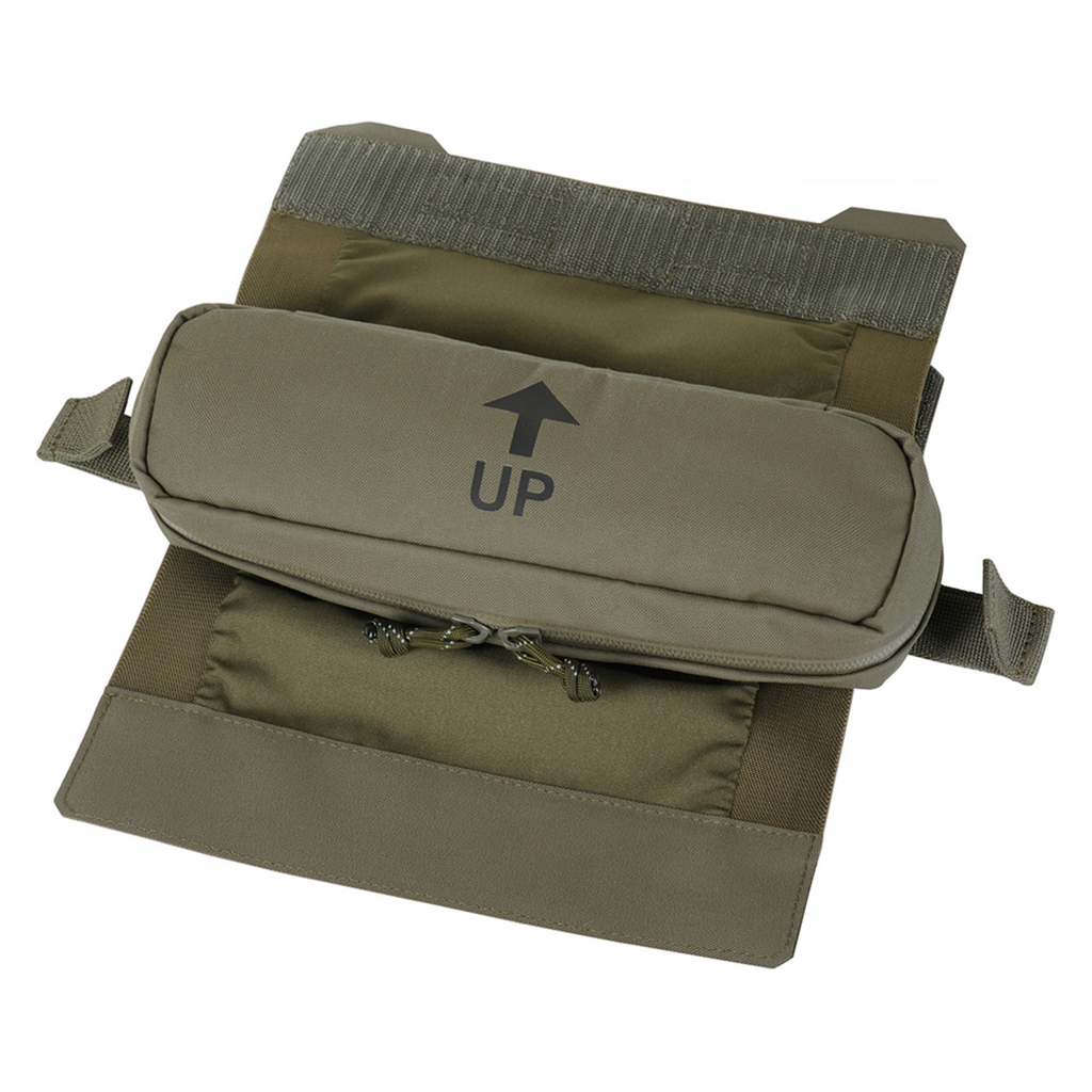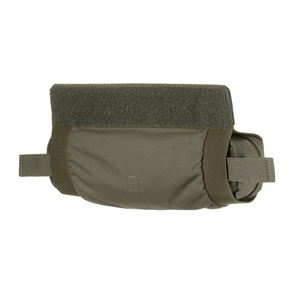 La bolsa está hecha de Cordura 500D y Cordura Squadron, materiales duraderos resistentes a la abrasión y al uso intensivo. Está diseñado para instalarse en el bolsillo trasero de un portaplacas y también se puede integrar con otros equipos mediante el sistema de montaje MOLLE y el panel de velcro extraíble.