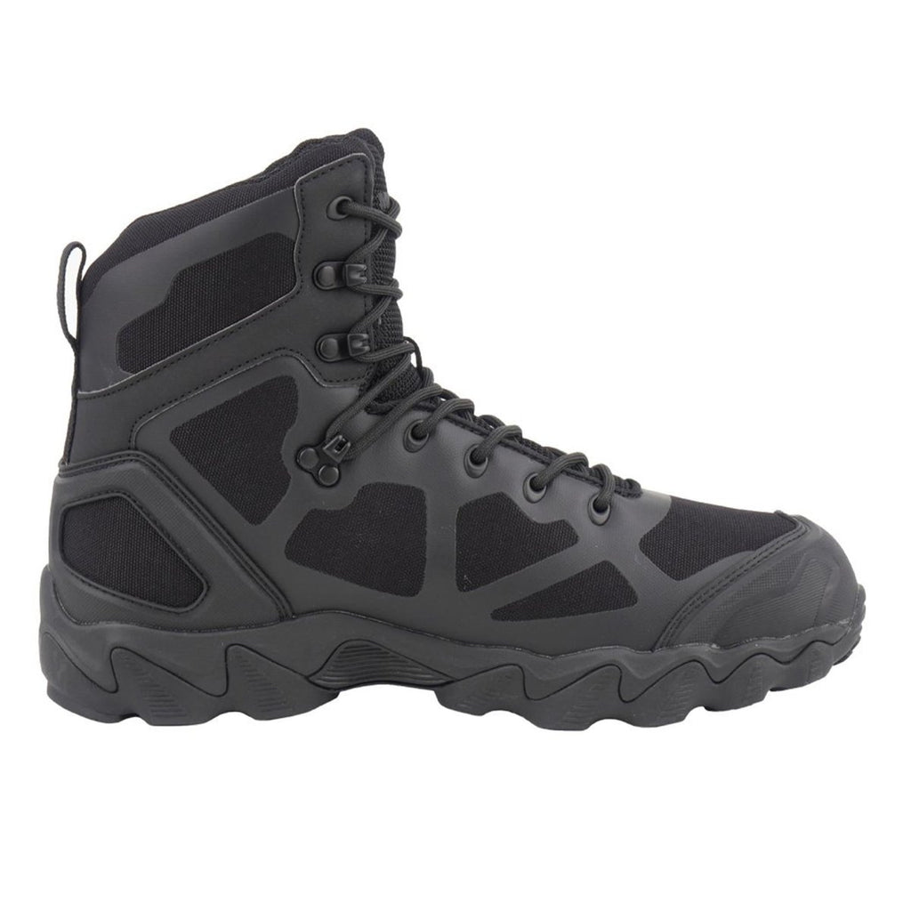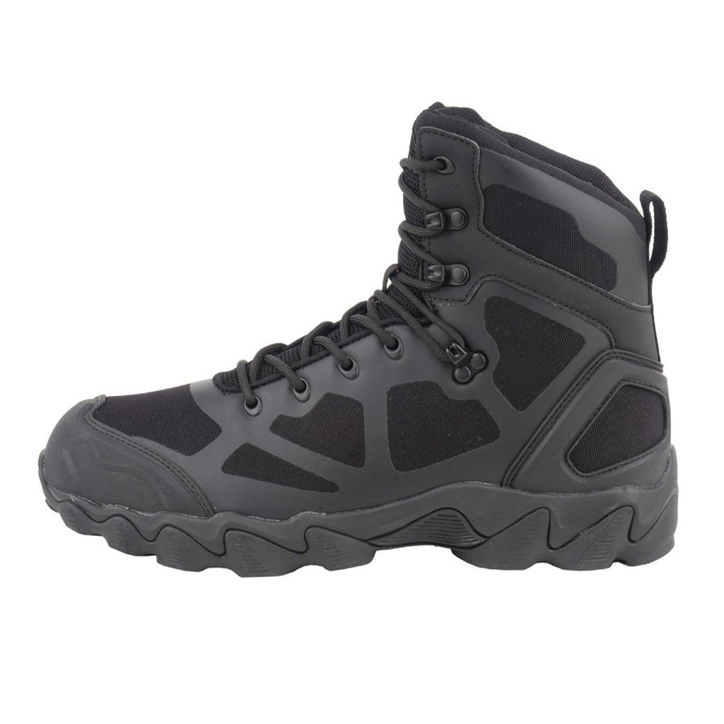 Las botas de montaña negras Chimera de la marca MIL-TEC cuentan con un diseño meticuloso optimizado para el combate, el trekking y diversas actividades al aire libre.