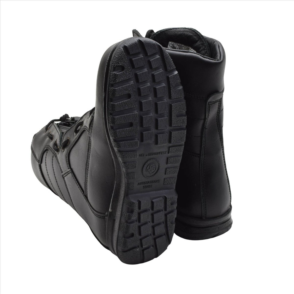 Experimente la auténtica calidad militar con las botas de piloto de la Fuerza Aérea Holandesa “Universal”. Fabricadas con cuero negro genuino de primera calidad, estas botas tácticas fueron diseñadas para uso profesional en cabinas de aviones y en el aeródromo. La suela de goma antiestática y resistente al aceite garantiza un excelente agarre en diversas superficies, mientras que la cremallera lateral integrada con cordones proporciona un sistema de encendido y apagado rápido y sencillo. Durable, cómodo y funcional: perfecto para entornos exigentes. Fabricado originalmente en 2015 y procedente de existencias genuinas de las Fuerzas Armadas Holandesas.