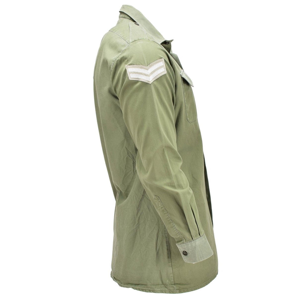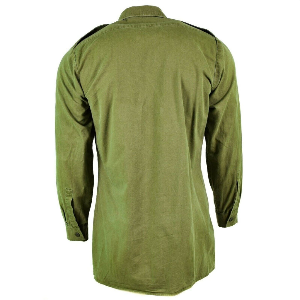 Presentamos la auténtica camisa militar formal británica en color oliva, una prenda atemporal para ocasiones formales. Con mangas largas, puños con botones, charreteras y bolsillos en el pecho, esta camisa irradia elegancia.
