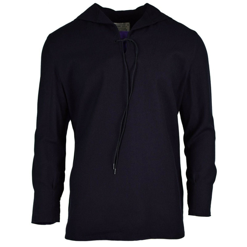 Esta camisa negra de manga larga con capucha es una prenda distintiva inspirada en la camisa midi azul marino original del ejército alemán.