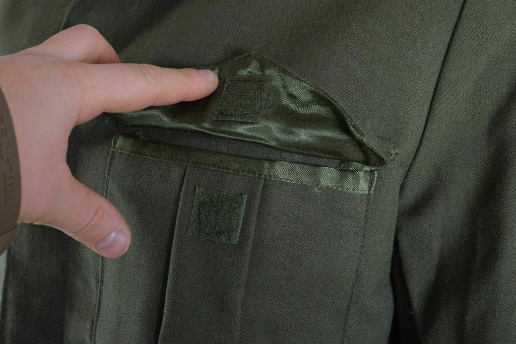 Pase a la moda de inspiración militar con la genuina chaqueta Ike del ejército griego. Una prenda atemporal que combina la durabilidad de la lana de gabardina con color clásico de oliva. Usado por el personal militar griego, esta chaqueta exuda herencia y practicidad, lo que lo convierte en un elemento básico de vestuario versátil.