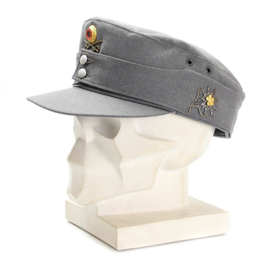 Capitres de montaña militar del ejército alemán original Gebirgsjäger Gray con insignia de flores