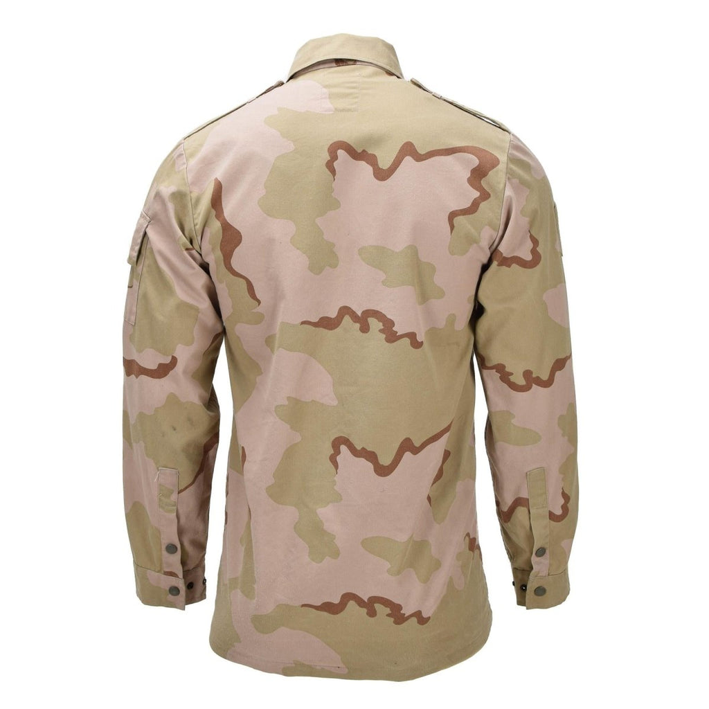 Esta chaqueta de campo militar holandesa original es una auténtica prenda excedente del ejército entregada al personal militar holandés. Diseñado para brindar durabilidad y funcionalidad, presenta el clásico patrón de camuflaje Desierto de 3 colores, ideal para ambientes áridos y secos.