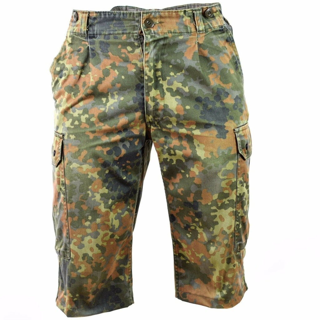 Pantalones cortos originales alemanes flecktarn: resistentes, ligeros y diseñados para la acción.