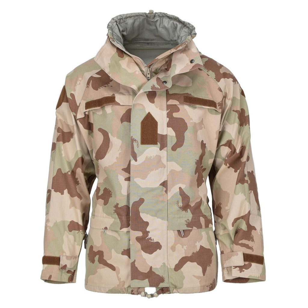 La chaqueta impermeable de camuflaje ofrece una excelente protección y estilo en condiciones climáticas adversas. La chaqueta impermeable original del ejército húngaro en Combat Camuflaje Desert Edition es perfecta para quienes necesitan ropa exterior confiable. Es una auténtica pieza de equipo militar, que garantiza durabilidad y una conexión con el patrimonio militar.