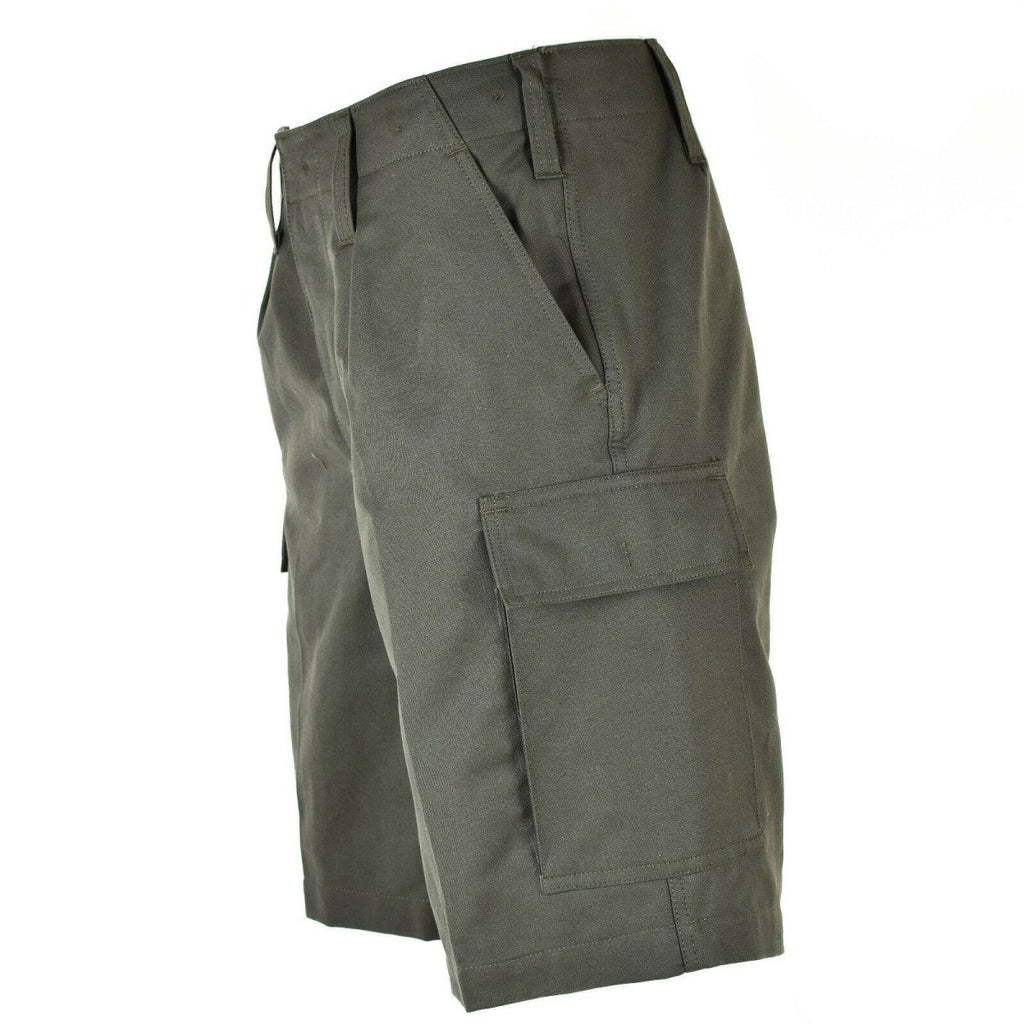 - Además, el color oliva sólido es ideal para integrarse en el entorno. Como auténtico excedente militar alemán, puedes confiar en la calidad de estos pantalones cortos. Diseñados para ser prácticos, cuentan con dos bolsillos cargo, dos bolsillos diagonales y un bolsillo trasero, lo que brinda un amplio espacio de almacenamiento para todos sus elementos esenciales.