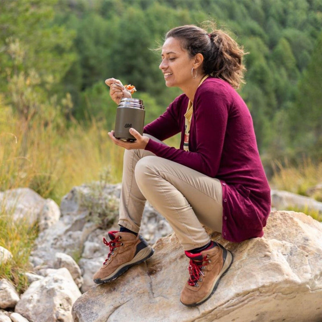 La "Jarra para alimentos de acero inoxidable marca ESBIT" es perfecta para quienes valoran los alimentos y bebidas calientes mientras viajan. Ya sea que esté en un viaje de campamento, en una caminata larga o simplemente necesite mantener sus bebidas o comidas calientes durante su viaje diario, esta jarra de comida ofrece comodidad y confiabilidad.