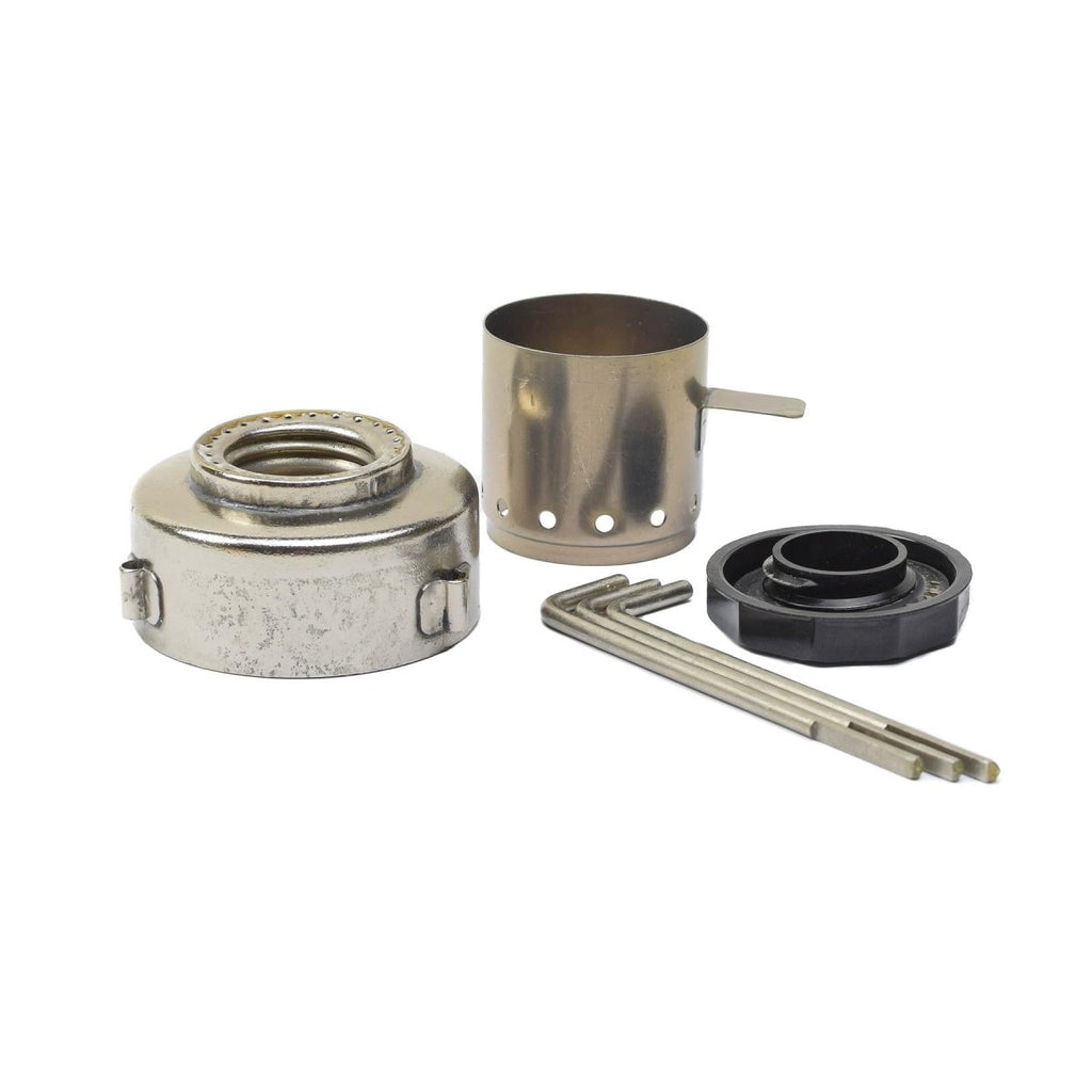 • Este juego de estufa militar vintage no solo es compacto sino también una solución de cocina completa. El quemador utiliza combustible líquido, lo que garantiza una llama constante para todas sus necesidades de cocina. Puedes ajustar el calor para preparar tus comidas y bebidas favoritas, ya sea que estés hirviendo agua o cocinando una comida completa. El soporte para ollas añade estabilidad y garantiza que las ollas y sartenes permanezcan en su lugar durante el uso.