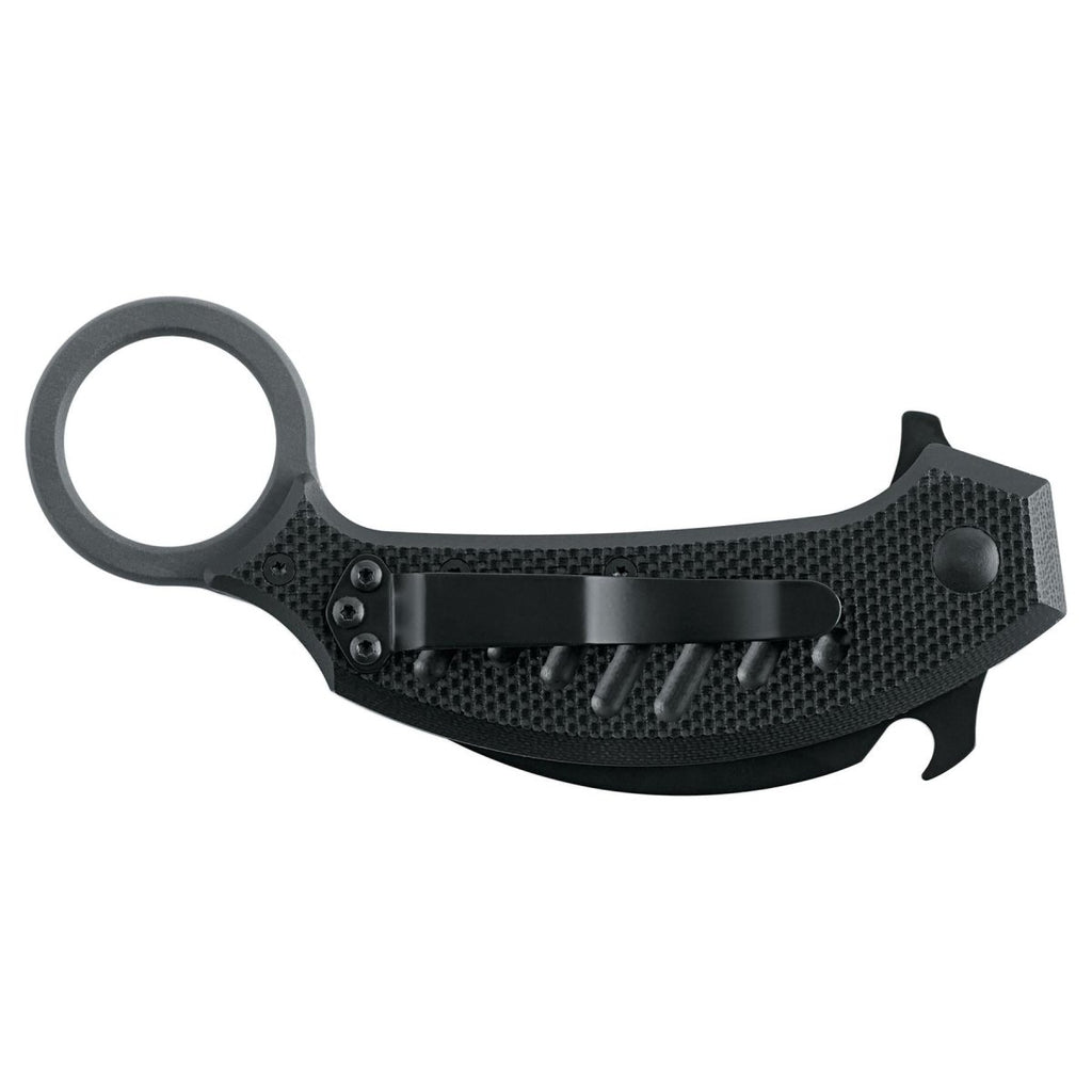 • El Hoja de acero inoxidable N690Co Se mantiene afilado durante mucho tiempo y resiste la corrosión incluso en condiciones adversas. Es forma de karambit curva Proporciona un excelente control para cortar, recortar o realizar tareas detalladas. El acabado lavado a la piedra agrega una apariencia resistente y profesional al mismo tiempo que protege la hoja contra rasguños.