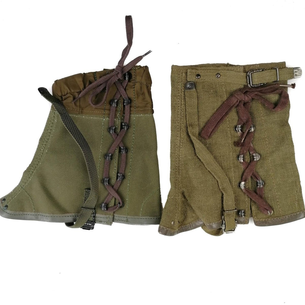 Las polainas de lona militares italianas vintage originales en color oliva son un tipo de equipo de protección que fueron utilizados originalmente por el ejército italiano. Están hechos de un material de lona duradero en color oliva y están diseñados para proteger las piernas y los pies del agua, la nieve y los escombros. Estas polainas generalmente se atan en la parte delantera y tienen correas que rodean la pantorrilla y el tobillo para asegurarlas en su lugar. Polainas de lona militares A menudo se usan sobre botas o zapatos, lo que los hace ideales para actividades al aire libre como caminatas, caza o campamentos. Tienen una apariencia vintage y se están volviendo populares entre los coleccionistas y entusiastas del equipo militar.
