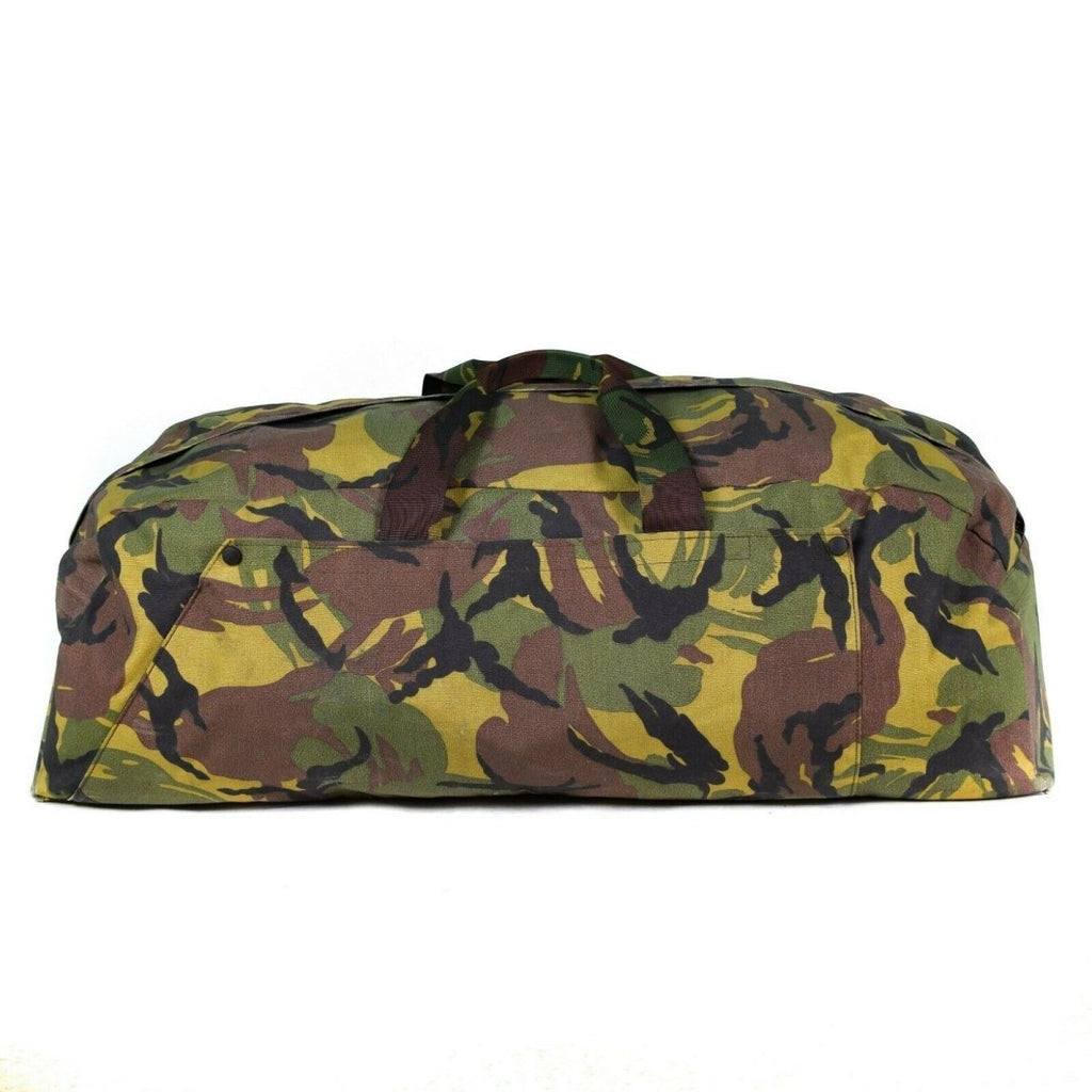 Bolsa de transporte de equipo militar genuina del ejército holandés DPM Woodland, un artículo excedente militar práctico y duradero diseñado para brindar versatilidad y estilo.