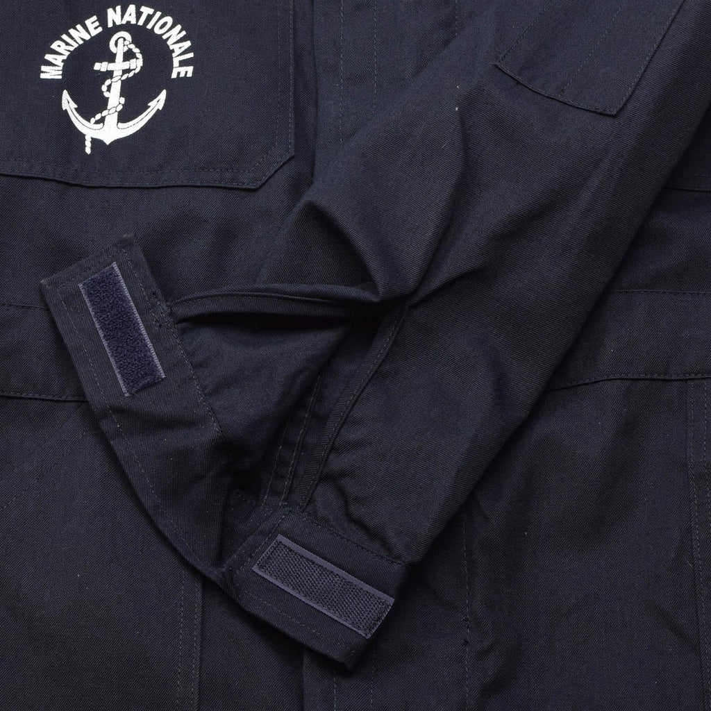 Mono marino termoestable El mono marino francés auténtico es una prenda muy duradera y funcional diseñada para soportar condiciones marítimas exigentes. Su elegante color azul oscuro es una representación clásica del atuendo naval, mientras que la inclusión de bandas reflectantes mejora la visibilidad para mayor seguridad en situaciones de poca luz. El cierre de cremallera frontal bidireccional permite un uso fácil y ajustes rápidos de ventilación, lo que lo convierte en una opción ideal para los rigores de la vida en el mar. Este mono es un símbolo de la excelencia naval francesa, ya que combina estilo, durabilidad y practicidad para quienes sirven a bordo de barcos y embarcaciones.