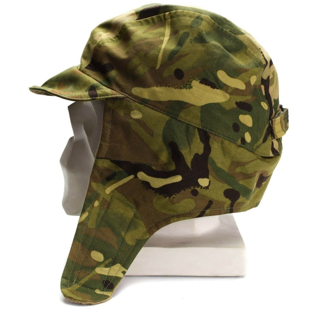 Esta es una gorra de paracaidista militar británica impermeable con camuflaje Multi-Terrain Pattern (MTP). Está diseñado para proteger la cabeza y mantener seco al usuario en condiciones de humedad. La gorra está confeccionada en un estilo clásico de paracaidista y presenta el patrón de camuflaje MTP, que fue desarrollado para combinarse con diversos terrenos que se encuentran en las operaciones militares británicas. La gorra está diseñada para que la utilicen paracaidistas y otro personal militar, y está diseñada para ser duradera y práctica para su uso en entornos desafiantes.
