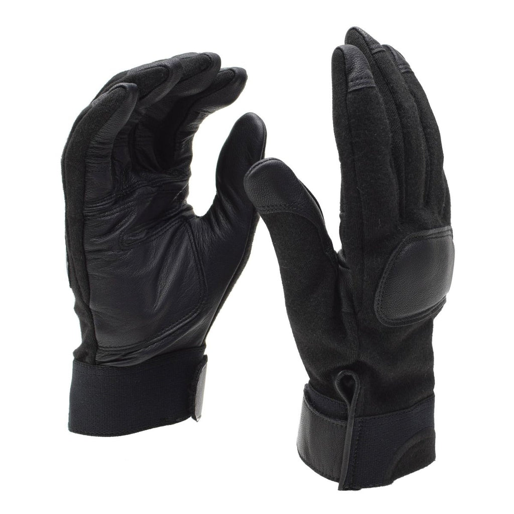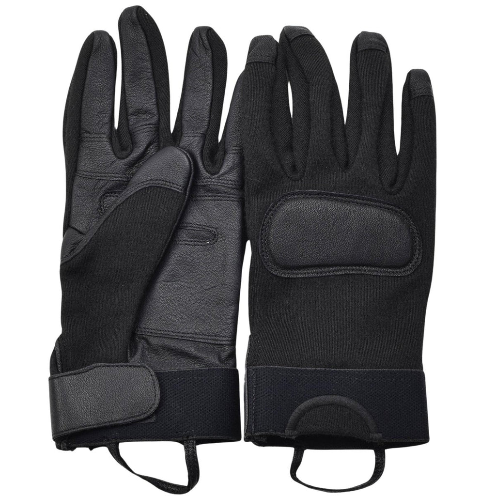 - Confeccionados con una mezcla duradera de 46 % cuero y 54 % metaaramida, estos guantes combinan flexibilidad y resistencia. Esta combinación única de materiales mejora tanto la comodidad como la resistencia, lo que le permite trabajar de forma eficaz en una variedad de condiciones. El elegante diseño negro hace que estos guantes sean versátiles y se combinen fácilmente con cualquier equipo táctico.