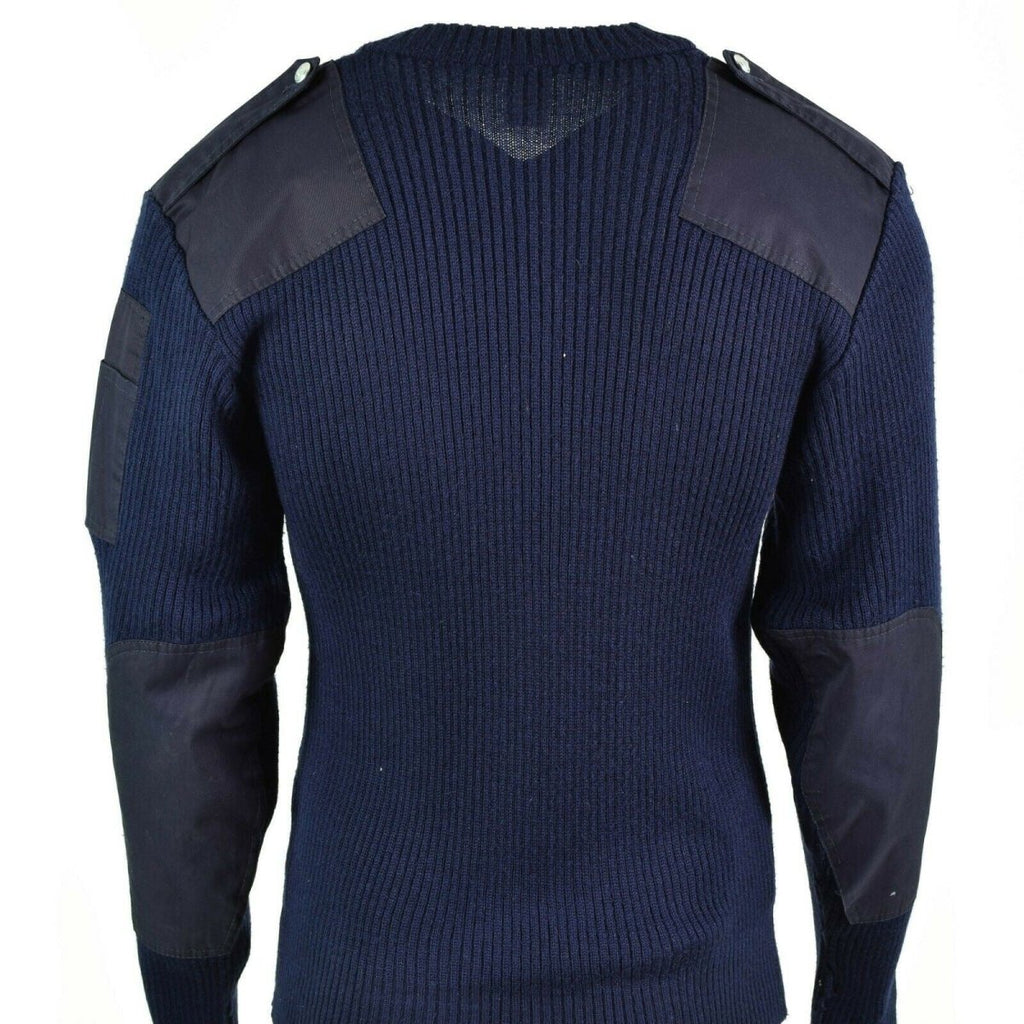 El jersey azul oscuro con cuello en V combina el estilo militar con un diseño práctico. Esta pieza excedente militar italiana ofrece una excelente durabilidad y comodidad.