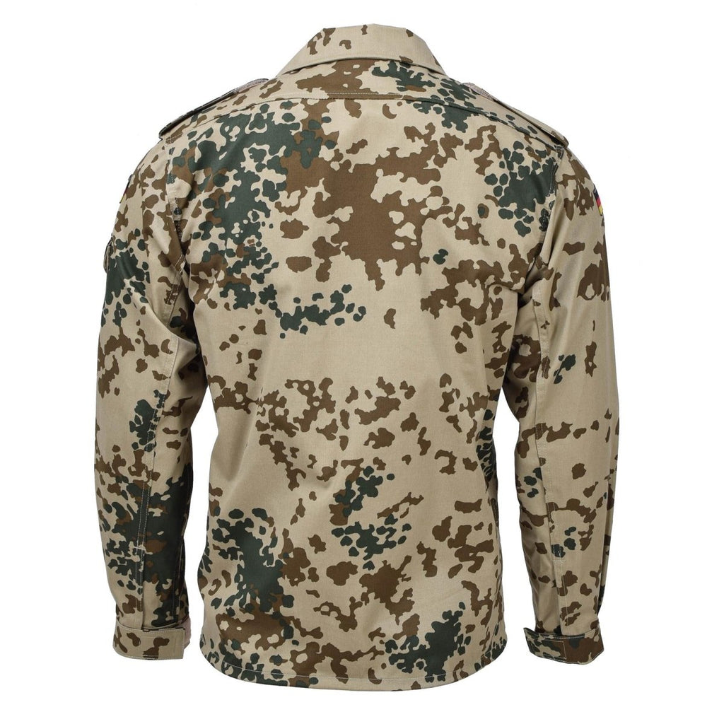 - Estas camisas de combate no son solo prácticas sino también elegantes, con su patrón de camuflaje de Tropentarn agregando un toque distinto. La fijación del botón Snap permite un cierre rápido y sin problemas. Mientras que las epoulettes de los hombros contribuyen a la estética resistente de las camisas.