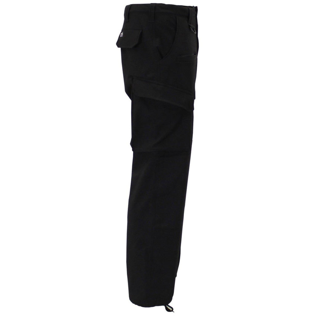 Para mayor funcionalidad, los pantalones cuentan con un cierre de cremallera frontal, dos bolsillos laterales, dos bolsillos en la cadera con solapa y botones, dos bolsillos cargo en las piernas y un bolsillo adicional con cremallera en el muslo derecho. Las presillas extralargas de 5,5 cm con anillas en D proporcionan compatibilidad con cinturones tácticos y accesorios para equipo. Las rodillas reforzadas aumentan la durabilidad durante actividades intensivas.