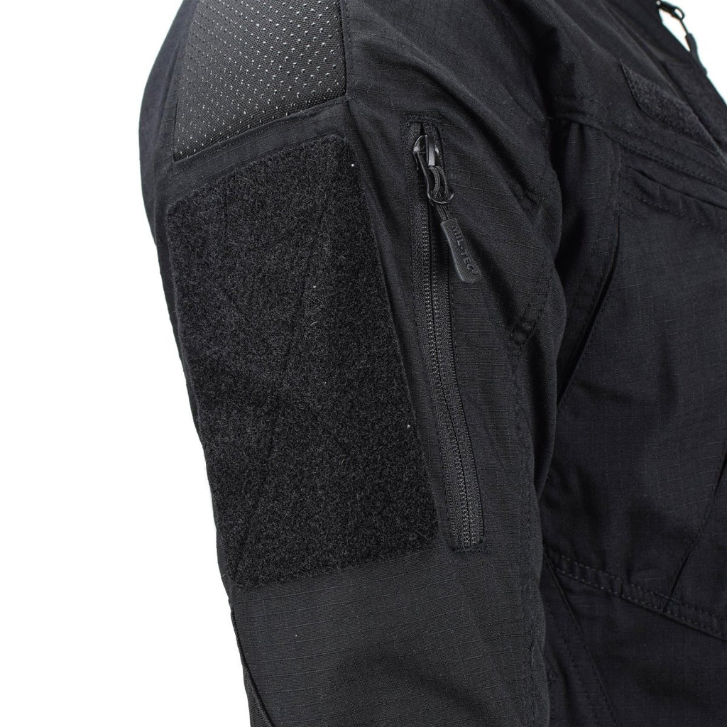 La chaqueta militar negra Mil-Tec ofrece una opción elegante y duradera para el uso táctico o diario. Cuenta con un diseño negro elegante y un ajuste estrecho, asegurando un aspecto a medida al tiempo que permite la comodidad y la movilidad.