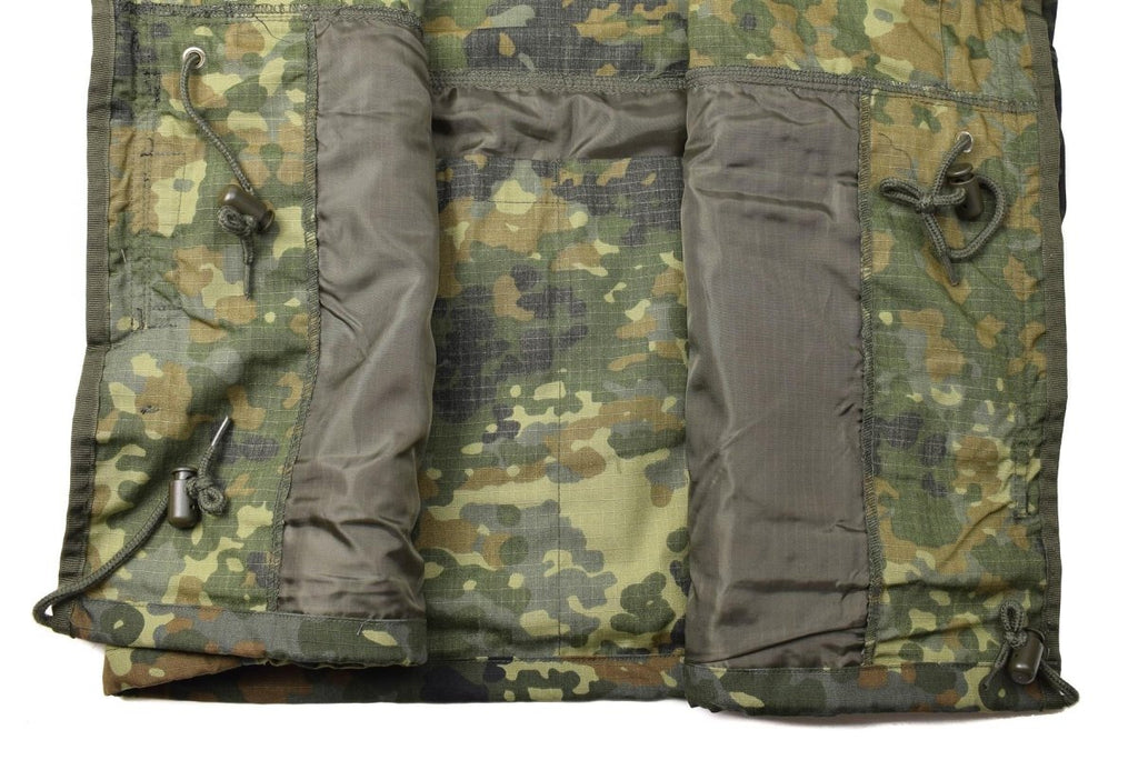 - Por lo tanto, confeccionado con una mezcla de polialgodón de primera categoría, es cómodo pero resistente. Su confección en tejido RipStop aumenta la durabilidad y resiste las aventuras al aire libre y el uso diario. El patrón Flecktarn, creado para el ejército alemán, proporciona un excelente camuflaje y un aspecto resistente.