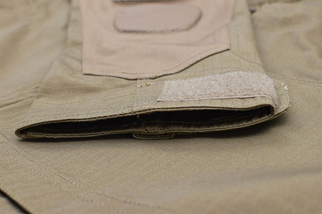 - Las características adicionales incluyen parches en los hombros para mayor durabilidad y puntos de sujeción del equipo, cremalleras frontales dobles para ventilación y acceso, y costuras reforzadas en toda la chaqueta para mayor longevidad y resistencia en el campo.