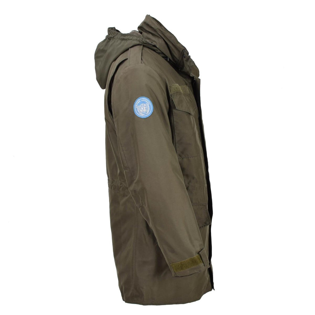 • El diseño de la parka militar de goretex incluye un cuello alto para una apariencia refinada. Adecuado tanto para salidas informales como para ambientes formales. Una insignia del ejército austriaco en el hombro añade un toque único de autenticidad. El forro extraíble ofrece calidez adicional y el cierre de cremallera garantiza un ajuste cómodo y seguro.