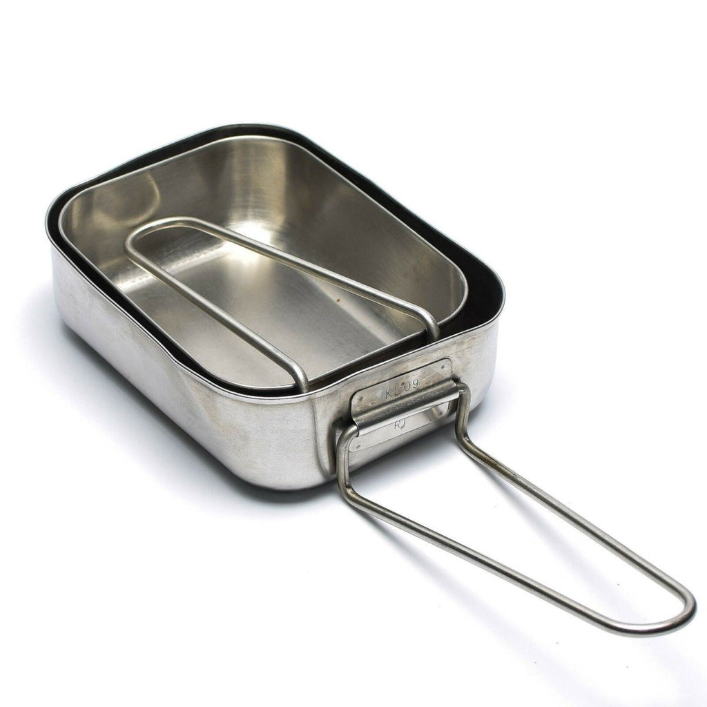 El kit de comedor de acero inoxidable Original Dutch Military es una pieza esencial de utensilios de cocina al aire libre para entusiastas militares, campistas y supervivientes.