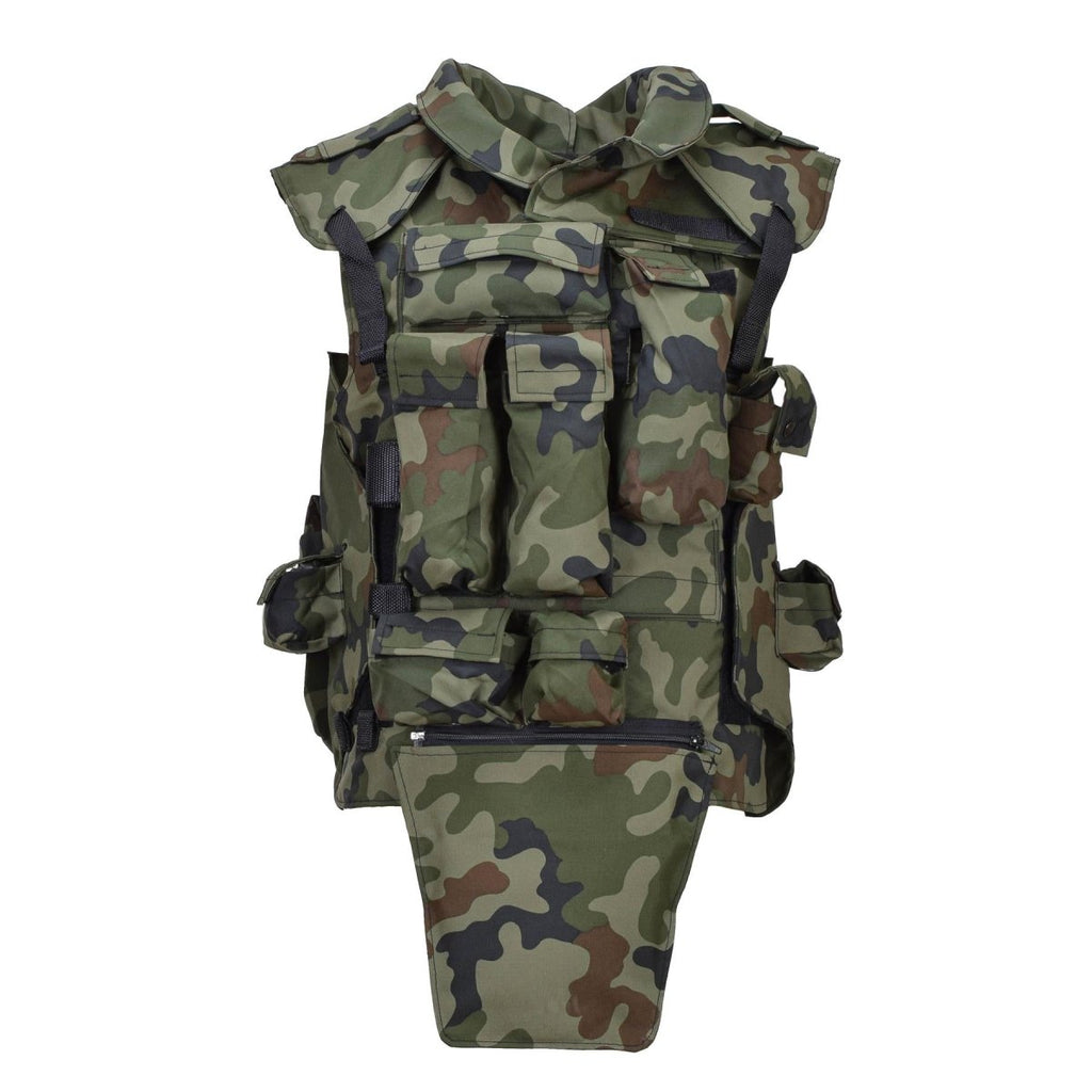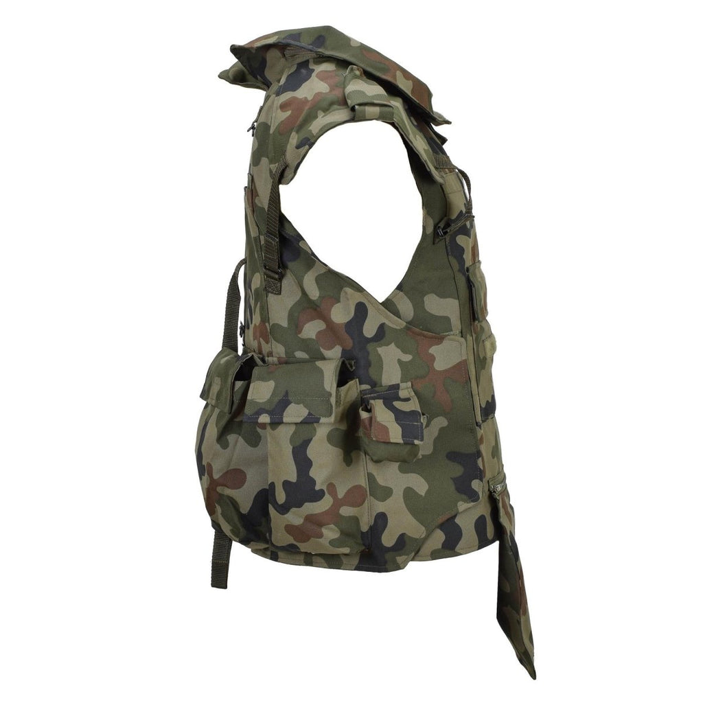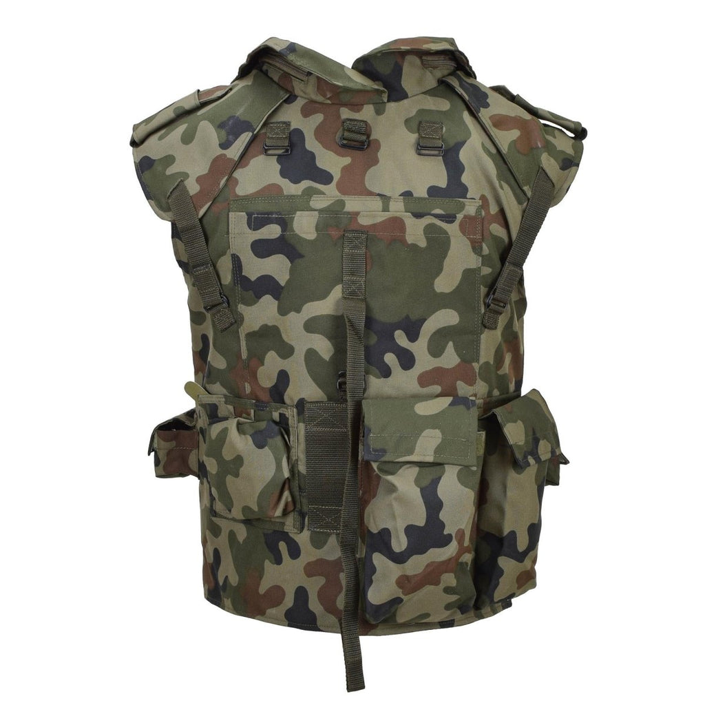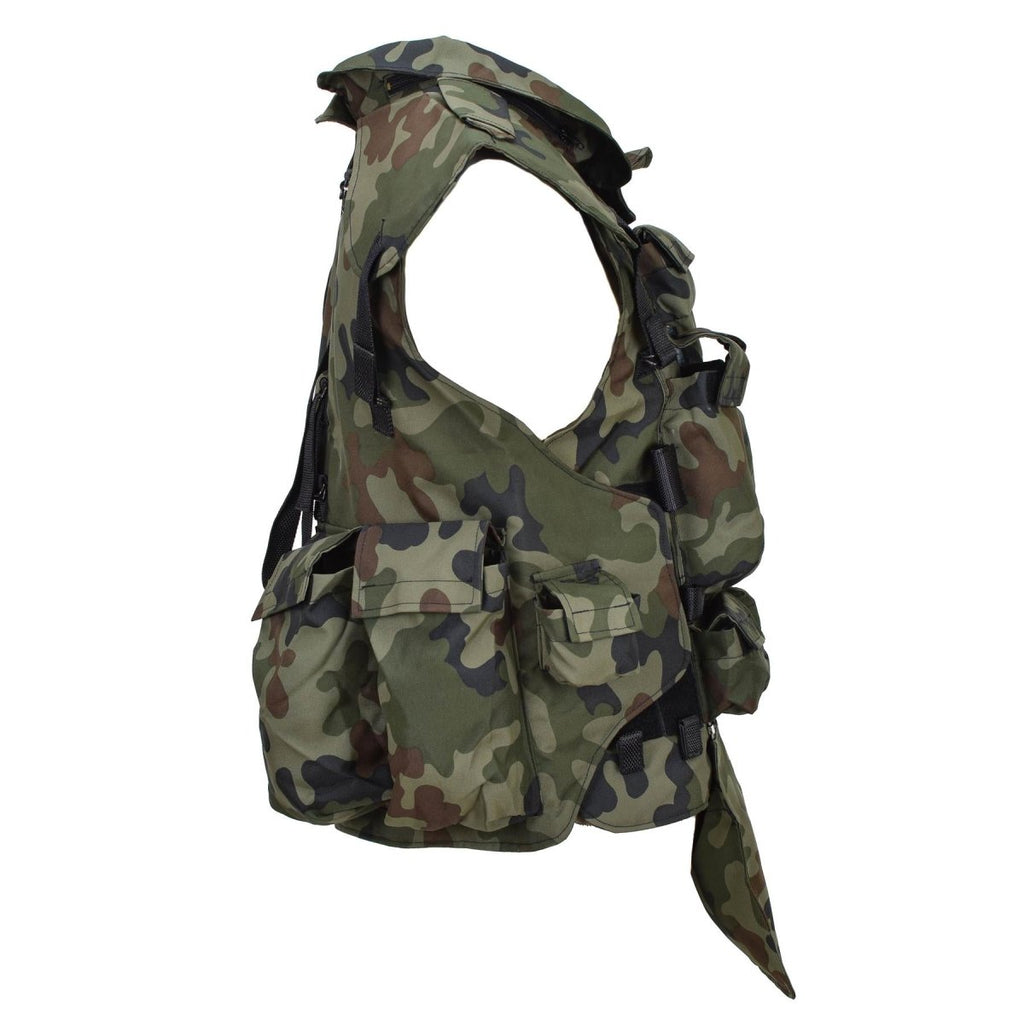 Este chaleco táctico militar polaco original, diseñado para transportar placas, presenta una estructura de poliéster duradero con un patrón de camuflaje Woodland. Incluye múltiples bolsillos para guardar equipo, un ajuste ajustable para mayor comodidad y un asa de rescate para extracciones de emergencia. Disponible en dos variantes, cada una de las cuales ofrece una configuración de bolsillo única para satisfacer sus necesidades tácticas.