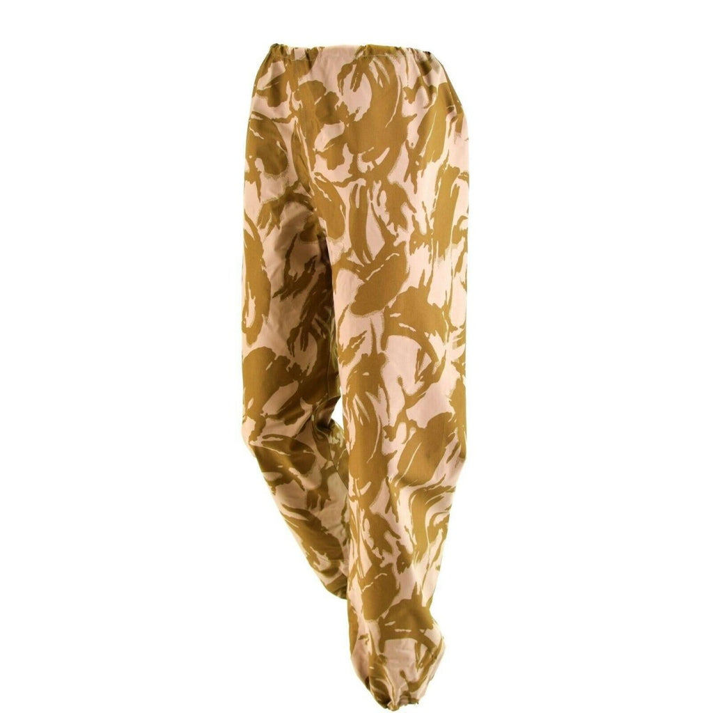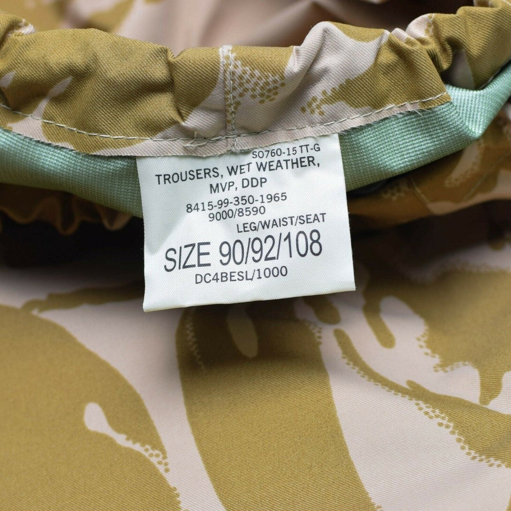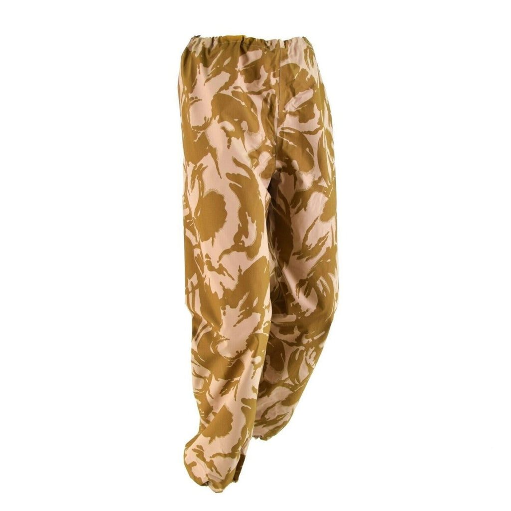 Los pantalones de clima húmedo militar británico en el camuflaje del desierto están diseñados para proporcionar protección contra las condiciones climáticas húmedas en ambientes desérticos. Están hechos de material impermeable y cuentan con una cintura y fondos ajustables para garantizar un ajuste cómodo. Los pantalones están diseñados para usarse sobre otra ropa y son compatibles con varios tipos de equipo militar. Son una opción confiable para el personal militar que opera en condiciones climáticas duras.