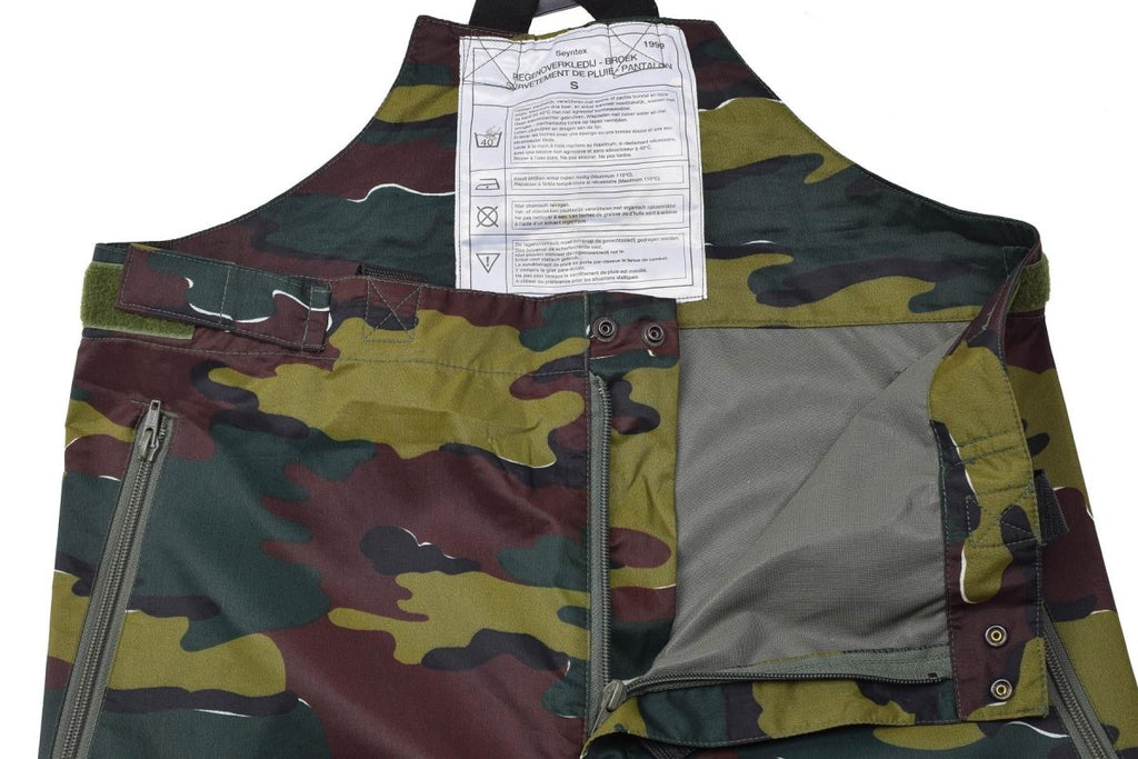 Los pantalones impermeables militares belgas en el patrón de camuflaje de rompecabezas están diseñados para protección contra las condiciones de clima húmedo. Estos pantalones presentan tirantes para mayor comodidad, asegurando que permanezcan en su lugar durante actividades rigurosas. El patrón de camuflaje de rompecabezas proporciona un aspecto único y moderno y al mismo tiempo ayuda a mezclar con los alrededores. Los pantalones están hechos de material impermeable, lo que lo mantiene seco en condiciones húmedas. Las rodillas reforzadas y los bolsillos múltiples proporcionan durabilidad y practicidad, lo que hace que estos pantalones sean adecuados para una variedad de actividades al aire libre y tácticas. Estos pantalones son imprescindibles para cualquier persona que busque un par de pantalones resistentes al agua duraderos y funcionales en un patrón de camuflaje moderno.