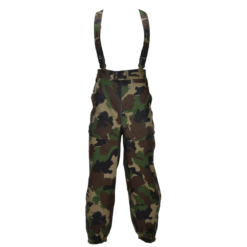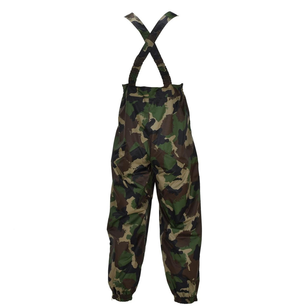 Estos auténticos pantalones militares húngaros impermeables M93 son pantalones sobrantes originales diseñados para su uso en condiciones exteriores húmedas y exigentes. Confeccionados con un tejido duradero y resistente al agua, brindan protección confiable contra la lluvia y el viento durante las actividades de campo.