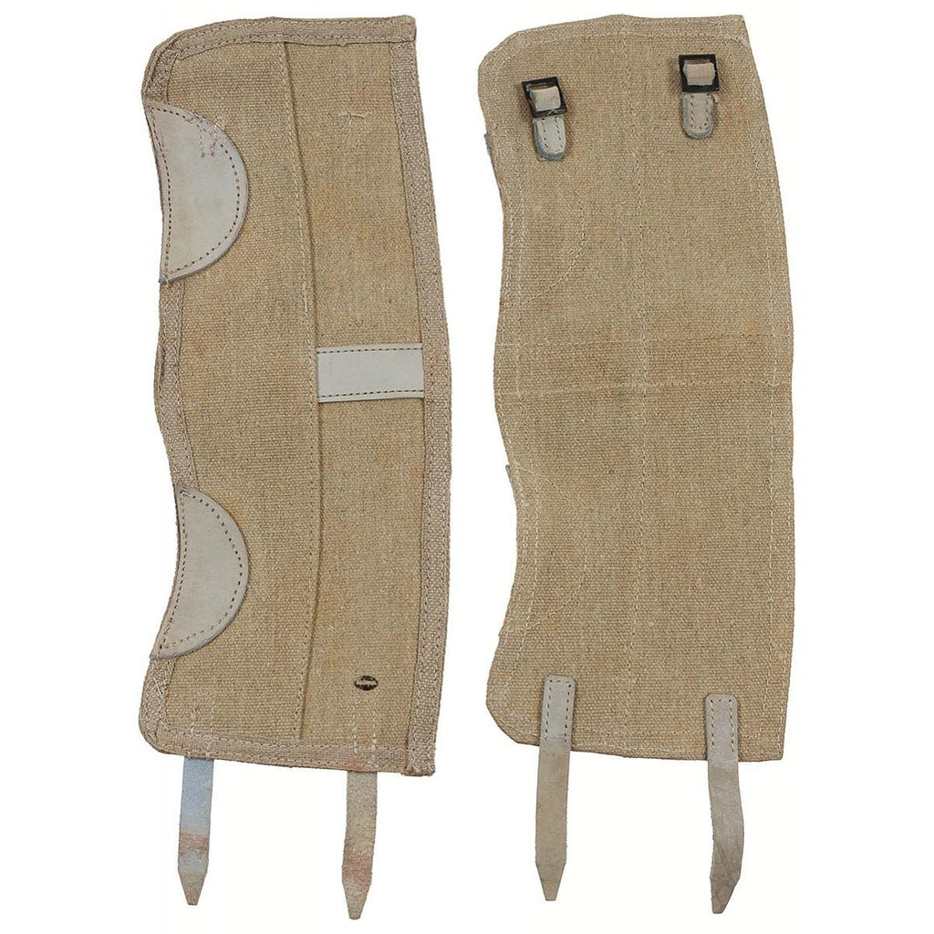 Polainas excedentes militares italianas originales hechas de material de lona duradero. Diseñadas para usarse sobre botas y parte inferior de las piernas, estas polainas brindan una protección efectiva contra la suciedad, el barro, la humedad y los escombros en ambientes al aire libre.