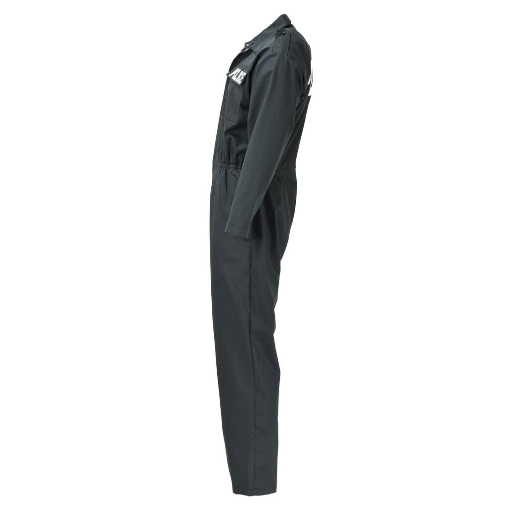 - Pasando a sus características, viene en negro clásico, confeccionado con 100% algodón para brindar transpirabilidad y un uso liviano adecuado para todas las estaciones. Con este mono de policía, estará equipado para cualquier desafío que le presente su día. Garantizando comodidad y funcionalidad en todo momento.