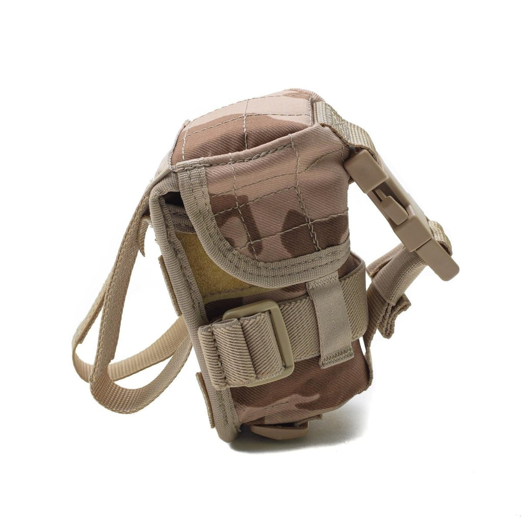 - Fabricada con un material duradero y liviano, esta bolsa ofrece resistencia y confiabilidad. Presenta un patrón de camuflaje del desierto, que combina bien con diversos entornos, especialmente en entornos áridos. La bolsa incluye un cierre de hebilla, lo que garantiza que sus artículos permanezcan seguros mientras está en movimiento.