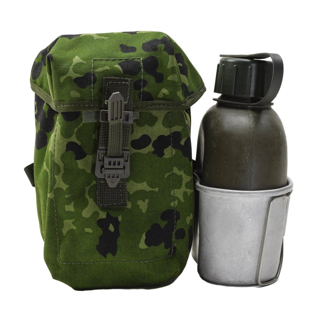 - Esta petaca militar danesa original está diseñada para ofrecer la máxima funcionalidad y fiabilidad. Encerrada en una duradera bolsa de camuflaje danés M84, esta petaca ofrece protección y practicidad. La cantimplora de aluminio garantiza un almacenamiento seguro de líquidos, lo que la hace perfecta para misiones o aventuras largas.
