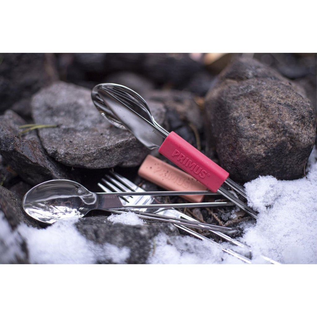 - Este juego de cubiertos para acampar de alta calidad incluye un tenedor, un cuchillo y una cuchara, todos elaborados con acero inoxidable duradero. La construcción robusta garantiza un uso prolongado, incluso en condiciones exteriores adversas. Los mangos recubiertos de silicona brindan un agarre cómodo, lo que permite un fácil manejo mientras se come. El diseño liviano mantiene su mochila liviana, lo que hace que este conjunto sea perfecto para cualquier aventura.