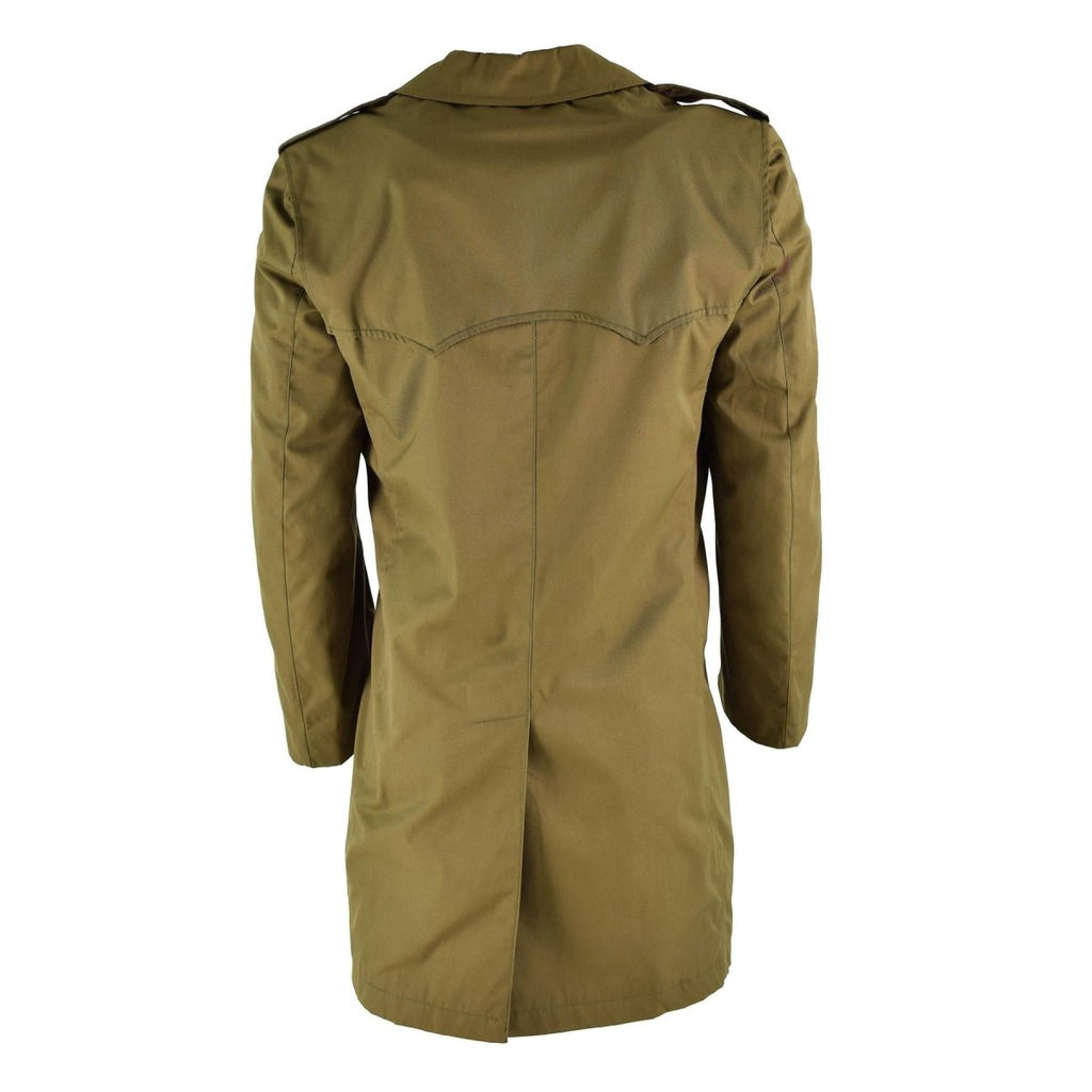 La gabardina militar italiana vintage de doble botonadura es una gabardina que originalmente usaban los soldados italianos. Está hecho de un material impermeable y presenta un diseño de doble botonadura, que brinda protección adicional contra los elementos. La gabardina también puede tener varios bolsillos y otras características funcionales para ayudar a los soldados en sus deberes. Debido a sus orígenes militares, también puede tener una construcción robusta y duradera. Se considera vintage porque es un artículo antiguo, que puede considerarse coleccionable.