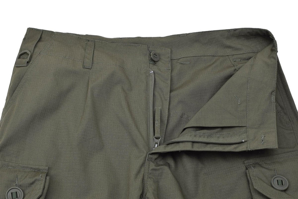 • Confeccionados con material ripstop verde oliva de alta calidad, estos pantalones resisten desgarros y abrasiones. Proporcionan un rendimiento fiable incluso en condiciones difíciles. Ya sea que estés en una misión militar o en una aventura al aire libre, estos pantalones cargo reforzados ofrecen la durabilidad que necesitas.