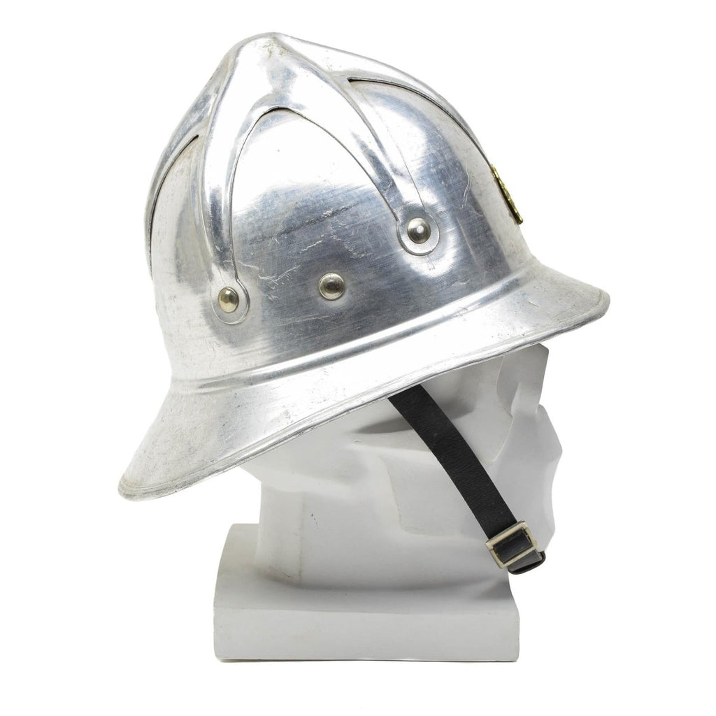 • Elaborado con aluminio duradero, este casco muestra la icónica insignia del cuerpo de bomberos con estrella roja, que simboliza su importancia histórica. La correa de cuero ajustable para la barbilla garantiza un ajuste seguro y cómodo tanto para hombres como para mujeres.